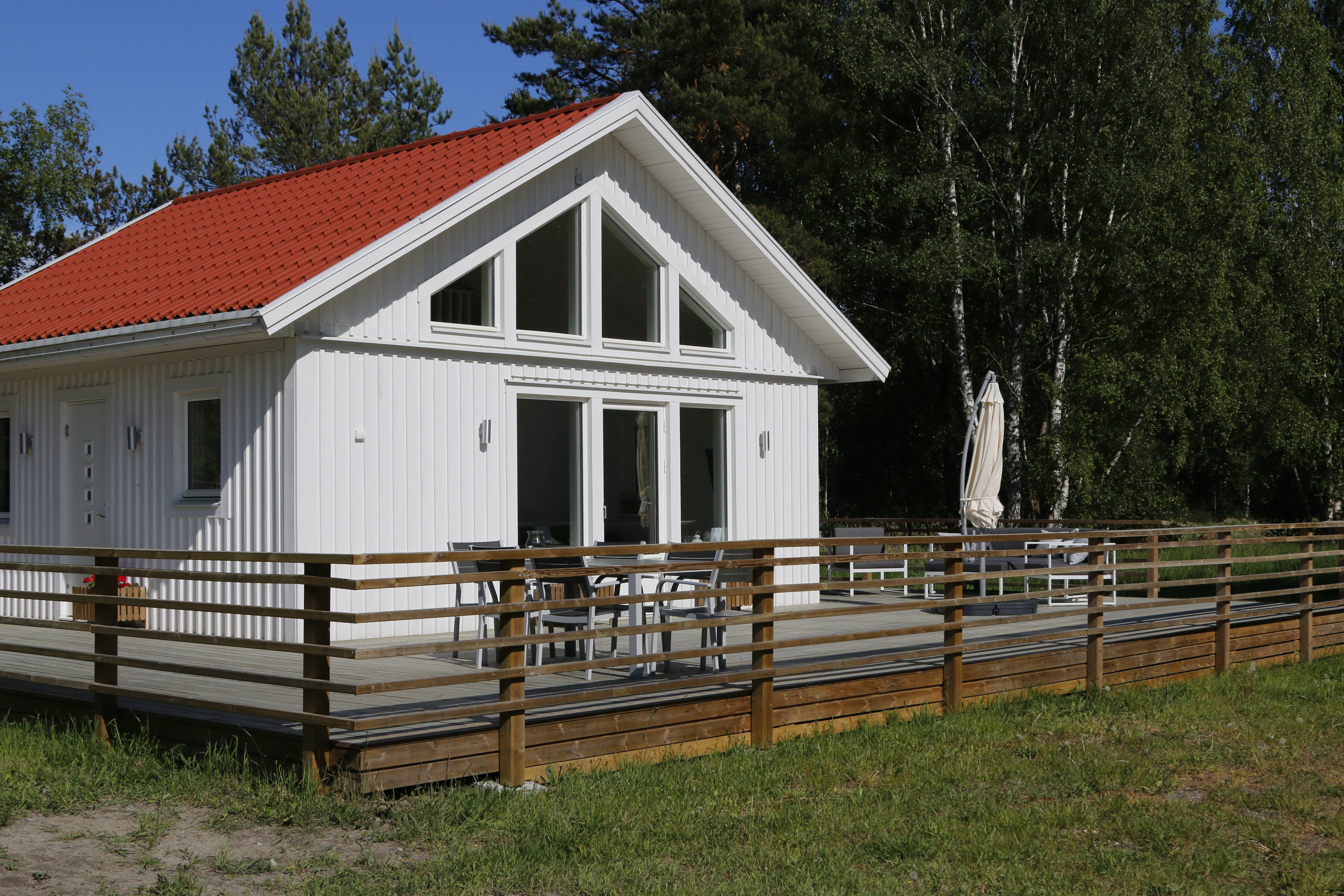 De här stugorna är ca 40 kvm och har 4+2 sovplatser. En dubbelsäng, en våningssäng och en bäddsoffa. Stugorna är byggda 2016 och har ett modernt kök som är ordentligt utrustat och ett badrum med golvvärme, dusch och wc. Stugorna har en altan om cirka 50 kvm. Pris 9000 kr/vecka 1800 kr/dag i högsäsong 1500 kr/dag i lågsäsong
